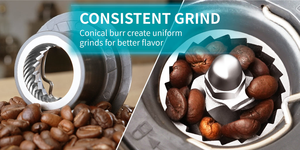 - Your Gevi 3-in-1 coffee machine features a conical burr grinder, allowing more consistently grind beans and overall better espresso extraction.