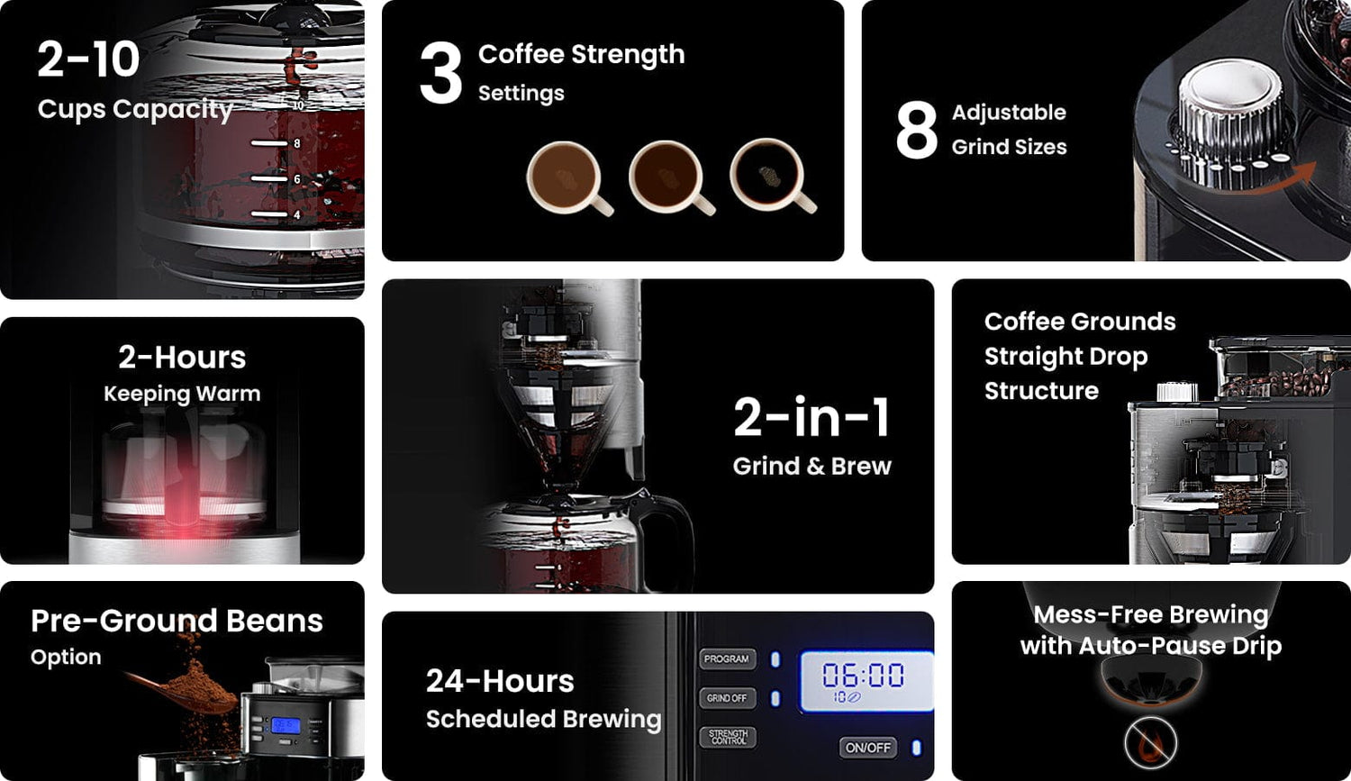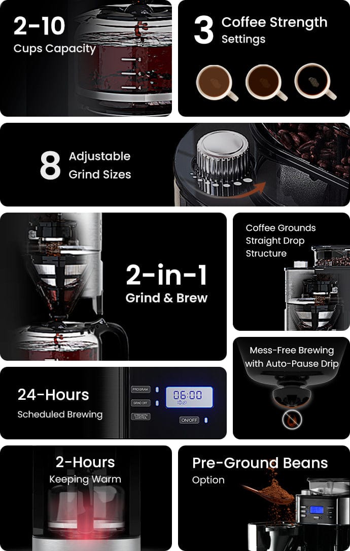GEVI Programmable 10-Cup Grind & Brew Coffee Maker Machine with Built-in Grinder DCMB0